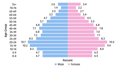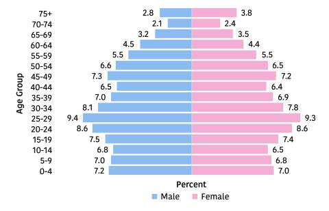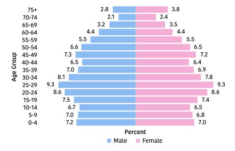 Population estimates from June 2017 indicated a total population of 1,356,633, with 50.2% male and 49.8% female. Of the total population, 53.8% were under 35 years old. The dependent population comprised 29.6% of the total population, including 20.6% under 15 years of age and 9% over 65 years of age.
