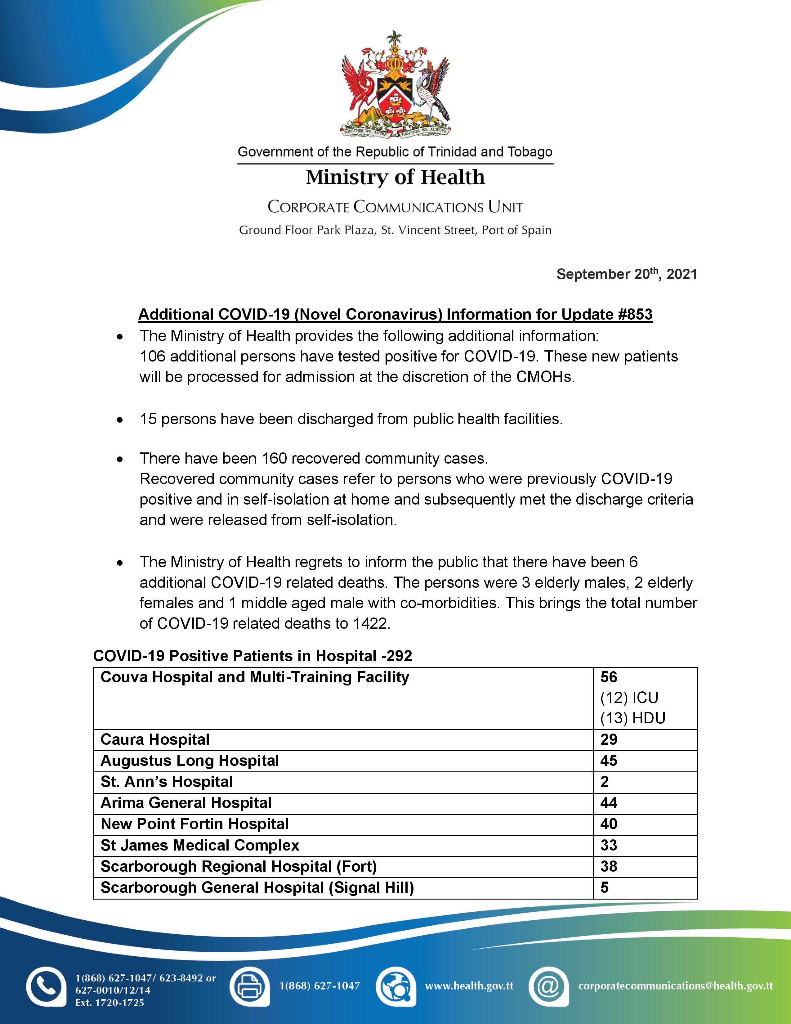 COVID-19 DAILY UPDATE - Monday September 20th, 2021