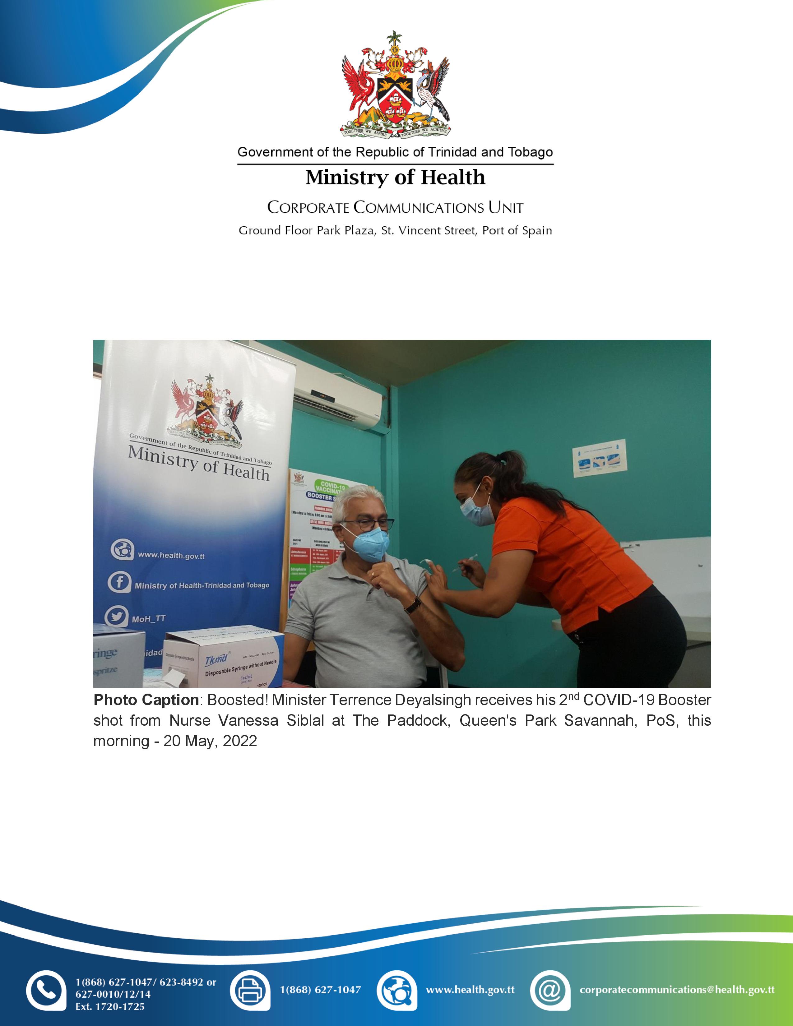 MoH Media Release: Minister of Health Receives 2nd COVID-19 Vaccine Booster 20 May, 2022