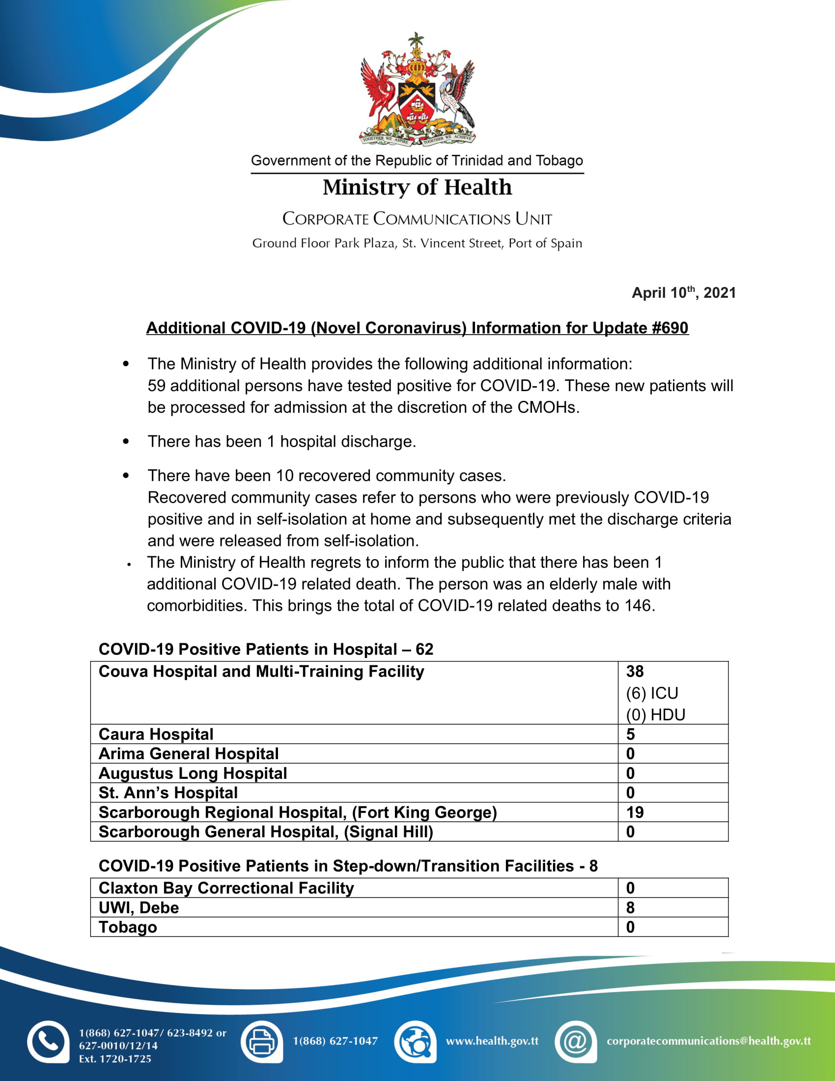 COVID-19 UPDATE - Saturday 10th April, 2021 Tags COVID-19 Daily Update Read more about COVID-19 UPDATE - Saturday 10th April, 2021Log in to post comments