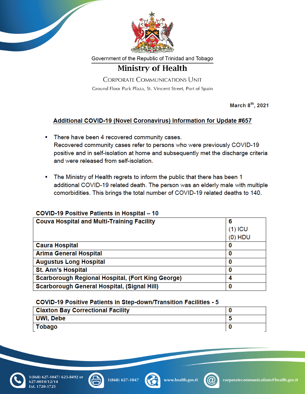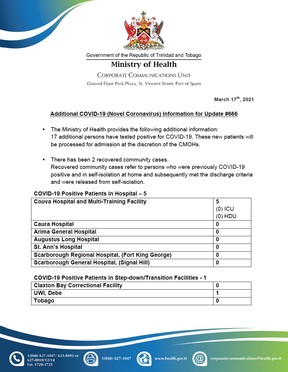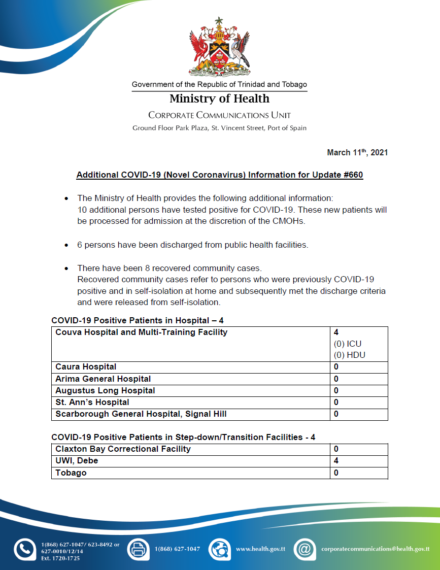 COVID-19 UPDATE - Thursday 11th March 2021 Tags COVID-19 Daily Update Read more about COVID-19 UPDATE - Thursday 11th March 2021Log in to post comments
