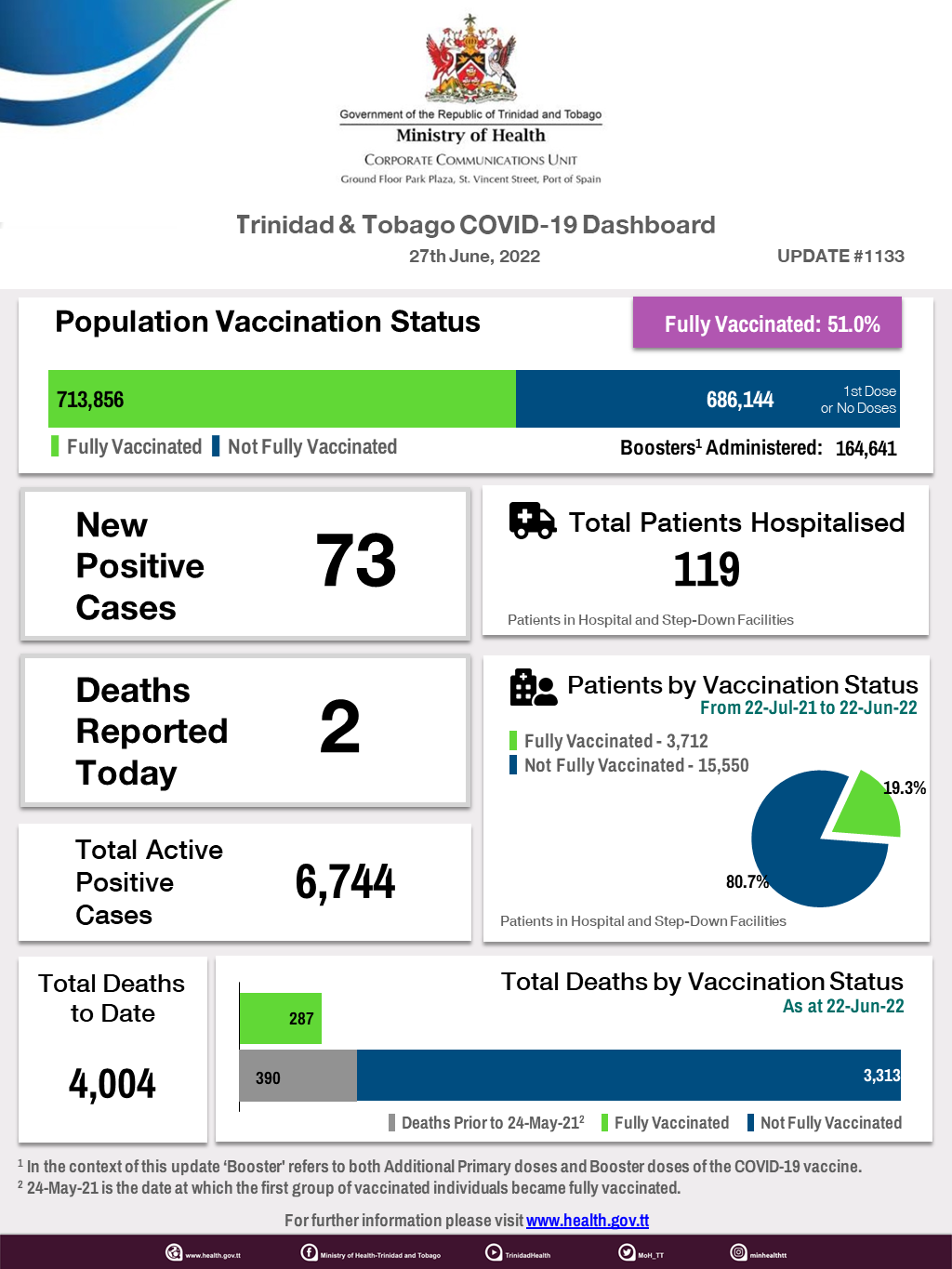 COVID-19 UPDATE - Monday 04th July 2022 Tags COVID-19 Daily Update Read more about COVID-19 UPDATE - Monday 04th July 2022Log in to post comments