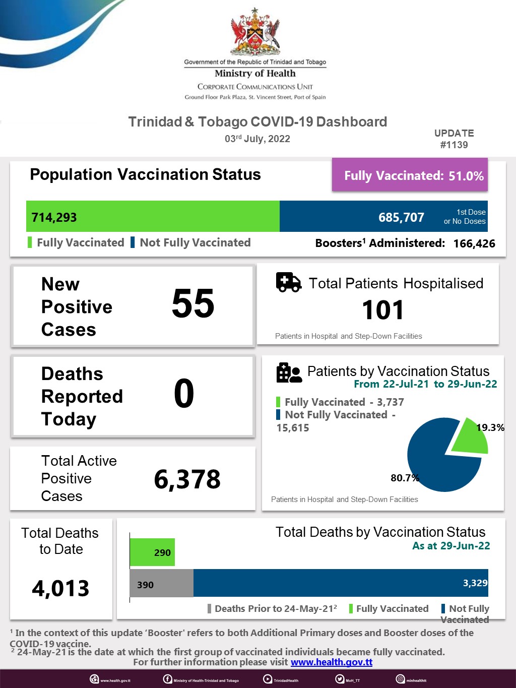 COVID-19 UPDATE - Friday 01st July 2022 Tags COVID-19 Daily Update Read more about COVID-19 UPDATE - Friday 01st July 2022Log in to post comments