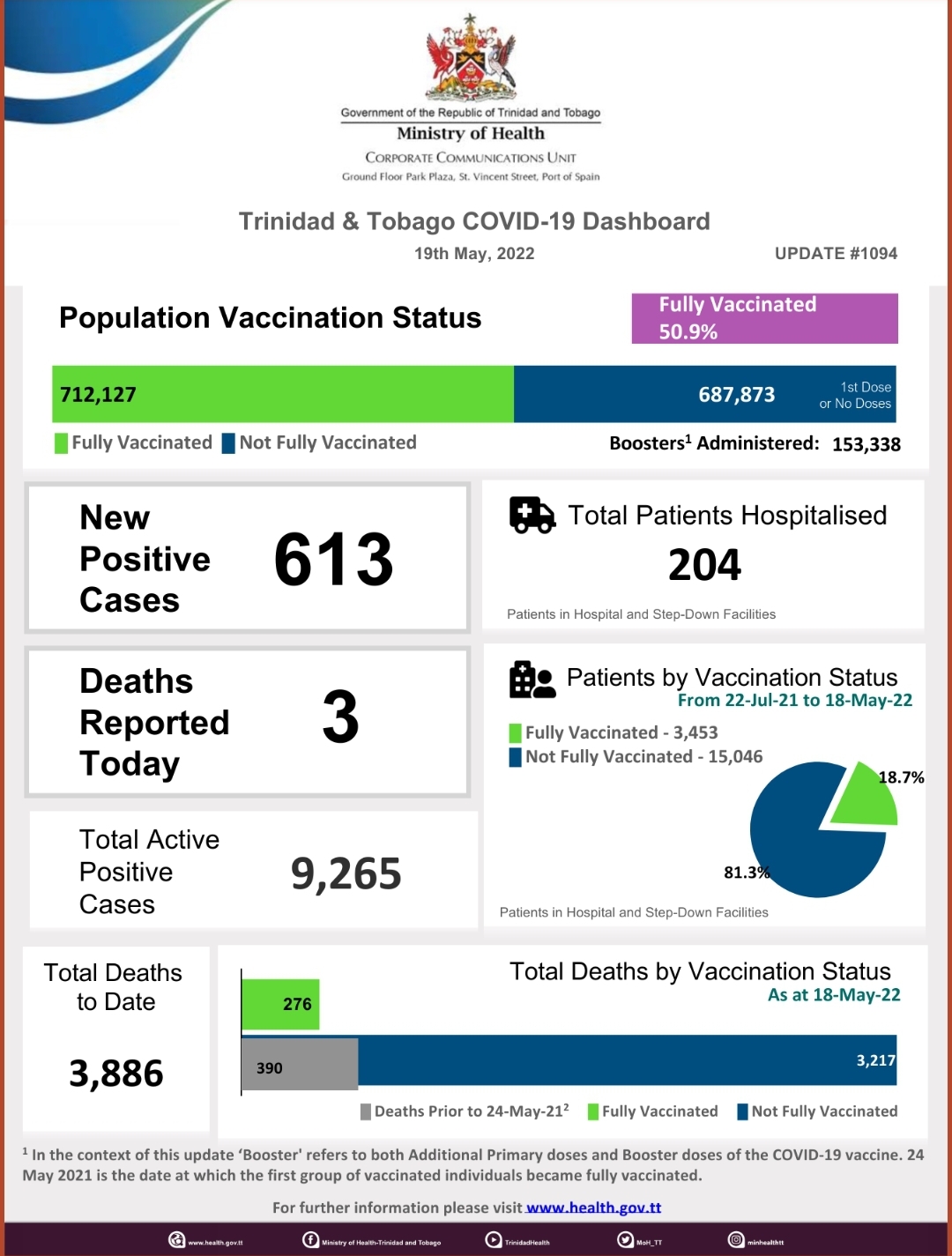 COVID-19 UPDATE - Wednesday 18th May, 2022 Tags COVID-19 Daily Update Read more about COVID-19 UPDATE - Wednesday 18th May, 2022Log in to post comments