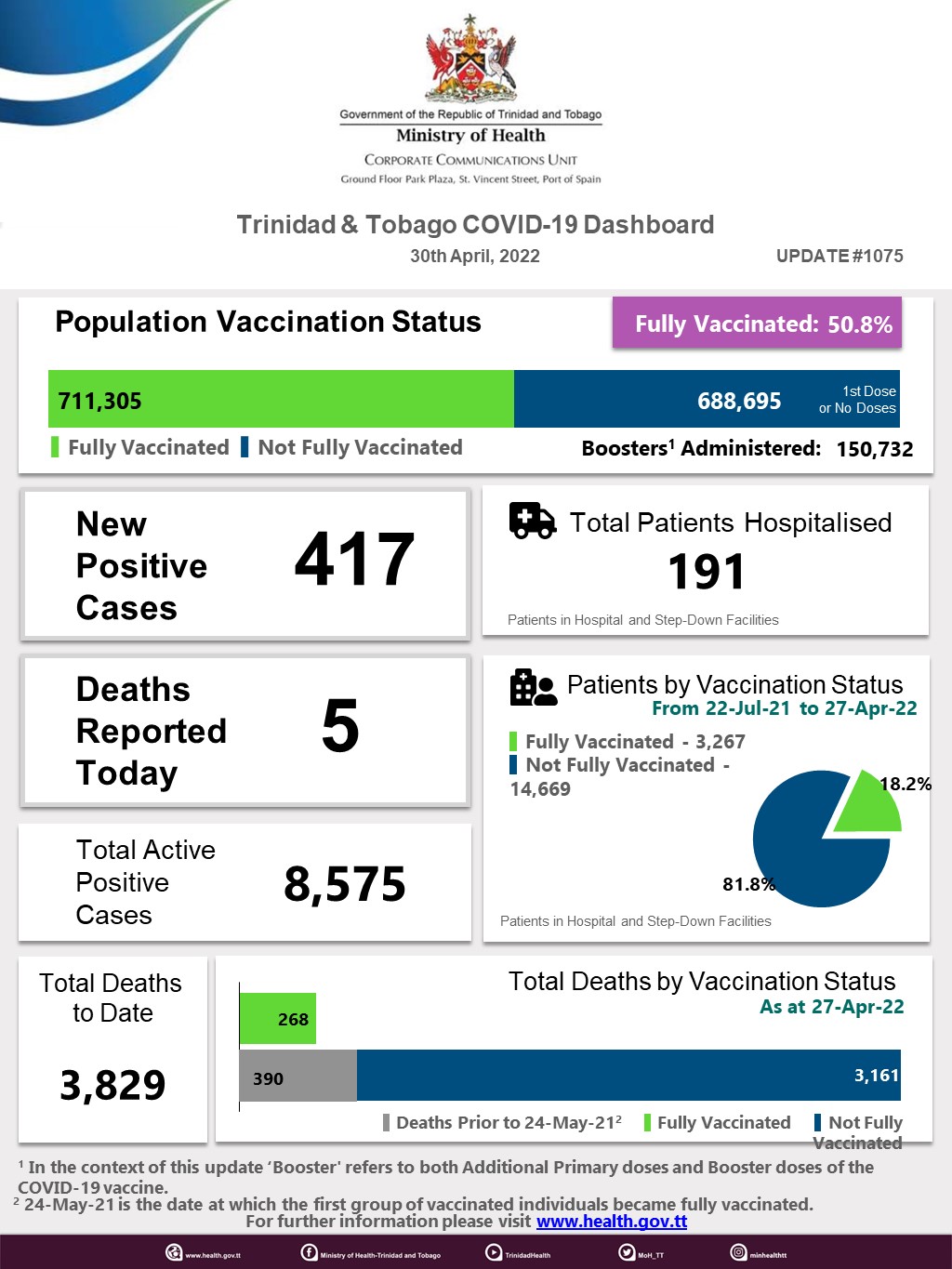 COVID-19 UPDATE - Saturday 30th April, 2022 Tags COVID-19 Daily Update Read more about COVID-19 UPDATE - Saturday 30th April, 2022Log in to post comments