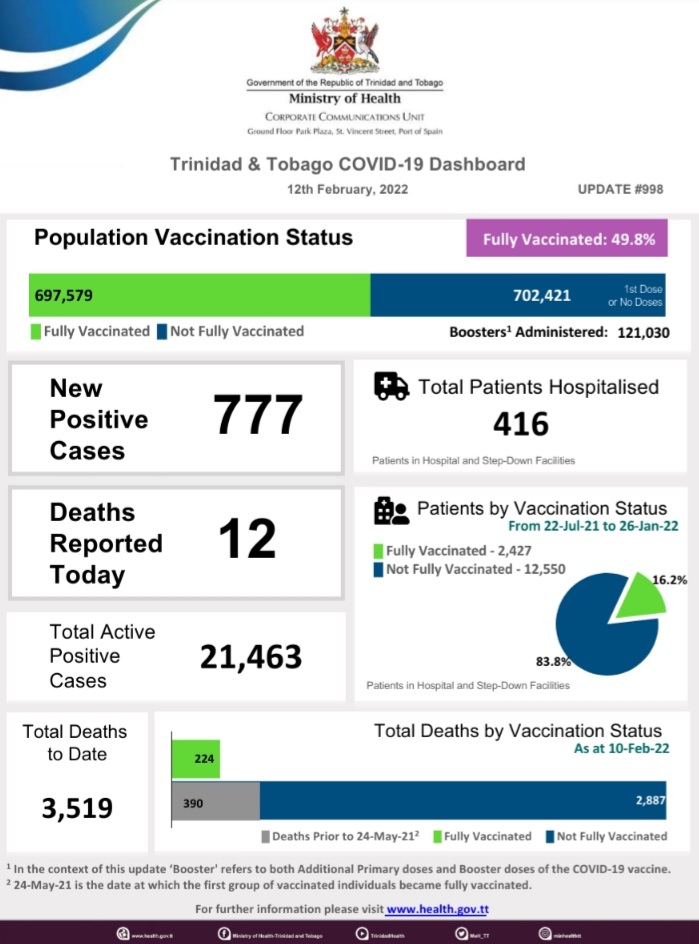 COVID-19 UPDATE - Monday 14th February 2022 Tags COVID-19 Daily Update Read more about COVID-19 UPDATE - Monday 14th February 2022Log in to post comments