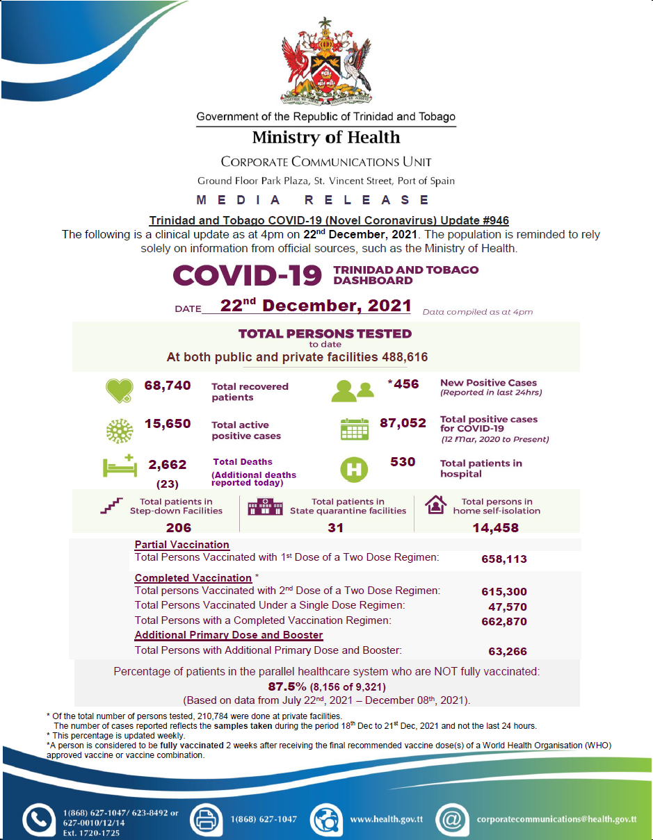 COVID-19 UPDATE - Thursday 23rd December, 2021 Tags COVID-19 Daily Update Read more about COVID-19 UPDATE - Thursday 23rd December, 2021Log in to post comments