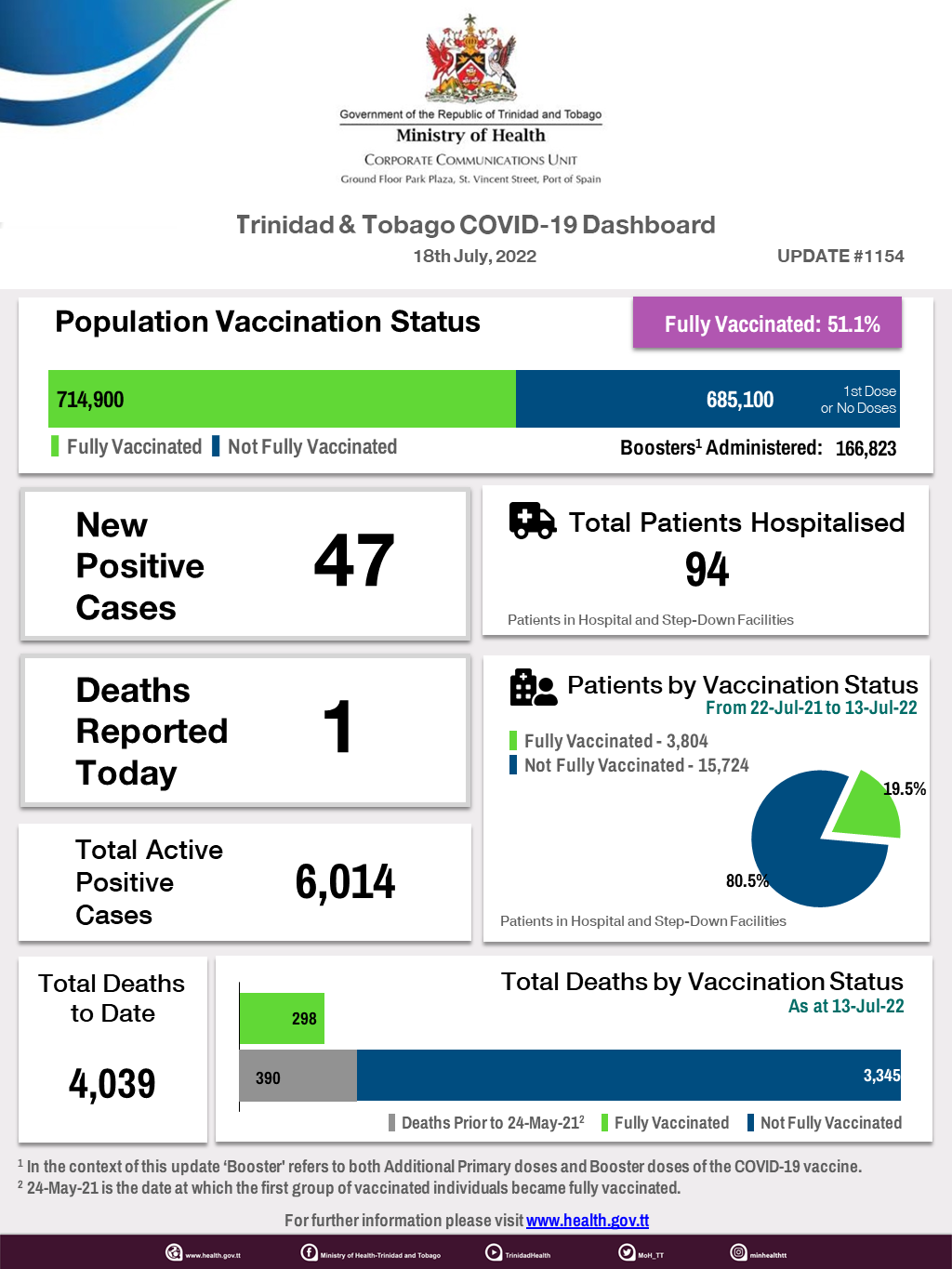 COVID-19 UPDATE - Saturday 16th July, 2022 Tags COVID-19 Daily Update Read more about COVID-19 UPDATE - Saturday 16th July, 2022Log in to post comments
